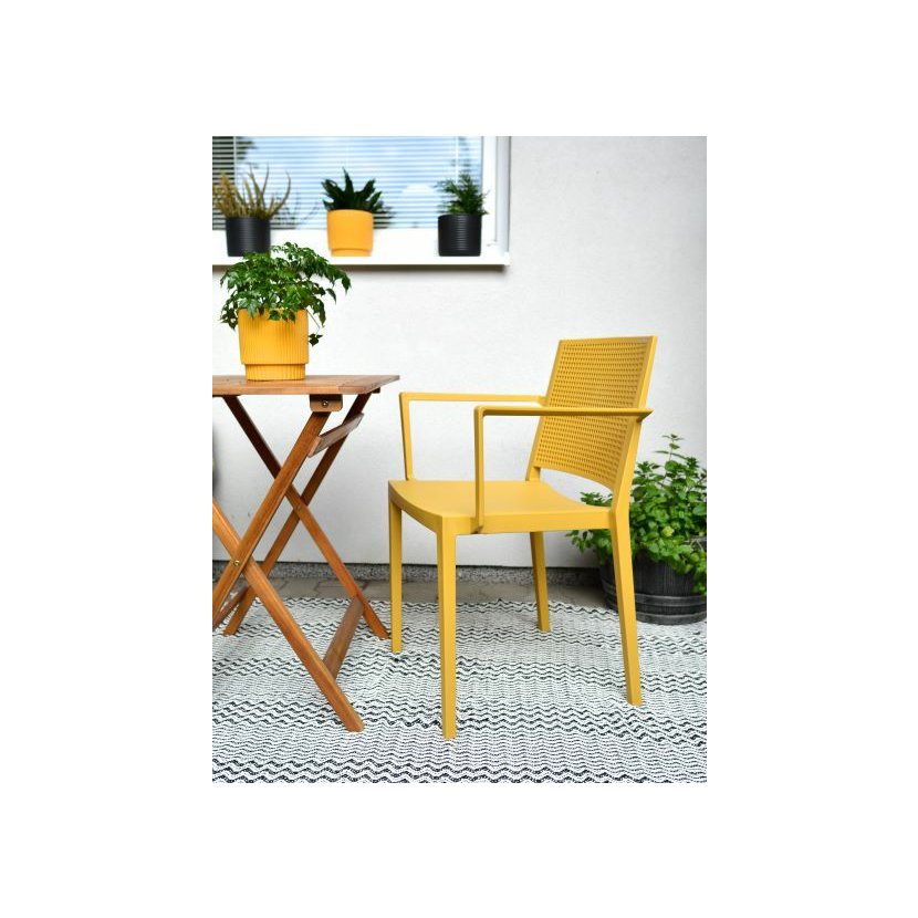Jednoduché, elegantné a zároveň praktické kreslo, ktoré disponuje pevnou konštrukciou, ktorá je vyrobená zo 100% recyklovaného materiálu. Tento materiál je odolný voči UV žiareniu. Kreslo je možné využiť ako v interiéri, tak aj v exteriéri. Konštrukcia kresla je nielen ľahká, ale zároveň aj veľmi pevná vďaka použitiu kompozitného materiálu vystuženého sklenými vláknami. Súčasťou kresla sú aj pohodlné podrúčky. S nosnosťou až 150 kg je vhodné ako pre domácnosti, tak aj na komerčné účely napr. do reštaurácií či konferenčných sál. Kreslo umožňuje aj stohovanie, vďaka čomu ich môžete uskladniť veľa na malom priestore.