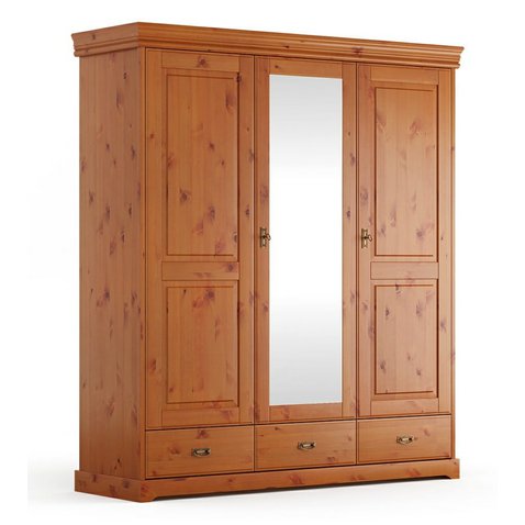 Trojdverová šatníková skriňa so zrkadlom Toskania 3 - medová borovica 01