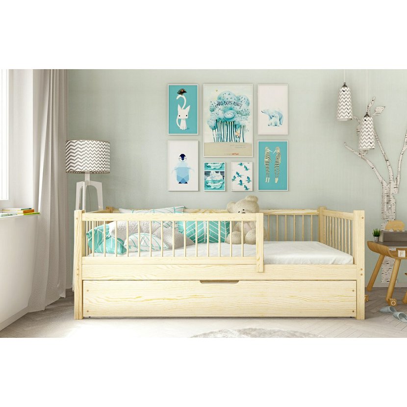 Pevná a stabilná jednolôžková posteľ do detskej izby je vyrobená z masívneho borovicového dreva z ekologickej farmy. Jednotlivé hrany sú brúsené do hladka bez nerovností. Zaoblené hrany minimalizujú riziko poranenia. Kolekcia postelí Axel je v škandinávskom štýle pre spokojný spánok. Praktickým doplnkom postele je úložný priestor, ideálny pre uskladnenie lôžkovín, hračiek alebo sezónneho oblečenia, ktorý prispieva k poriadku a úspore miesta v izbe.