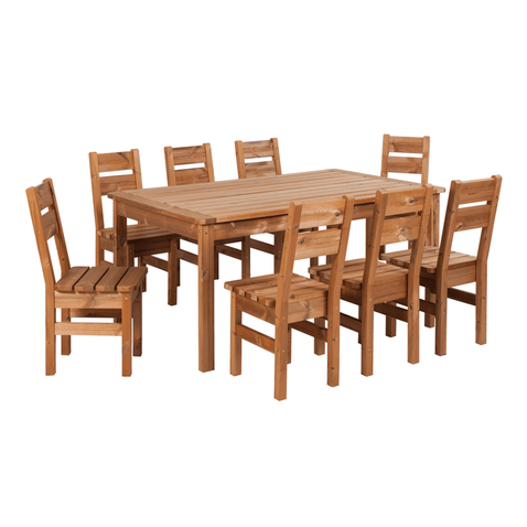Záhradný set Lauri 8 z tepelne upraveného dreva ThermoWood je určený na použitie ako priamo vo vlhkom prostredí ako sú napríklad bazény, sauny či wellness centrá, tak aj na vonkajšie použitie ako…