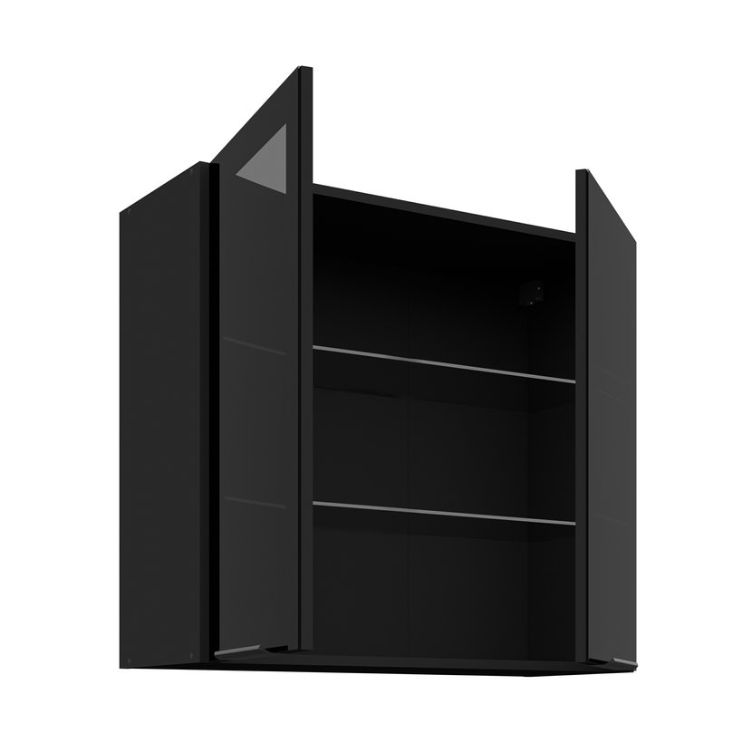 predné sklo: Antisol grafitový, tvrdené, dookola leštené sklo - hr. 4 mm, sklenené police: priehľadné, hr.5 mm