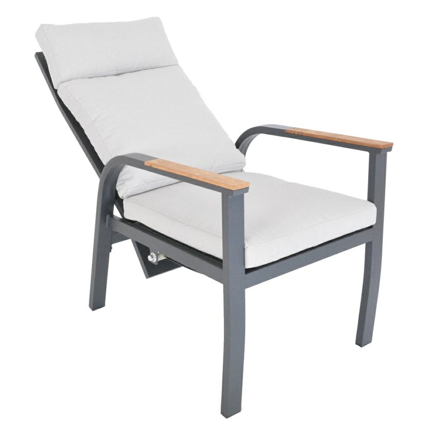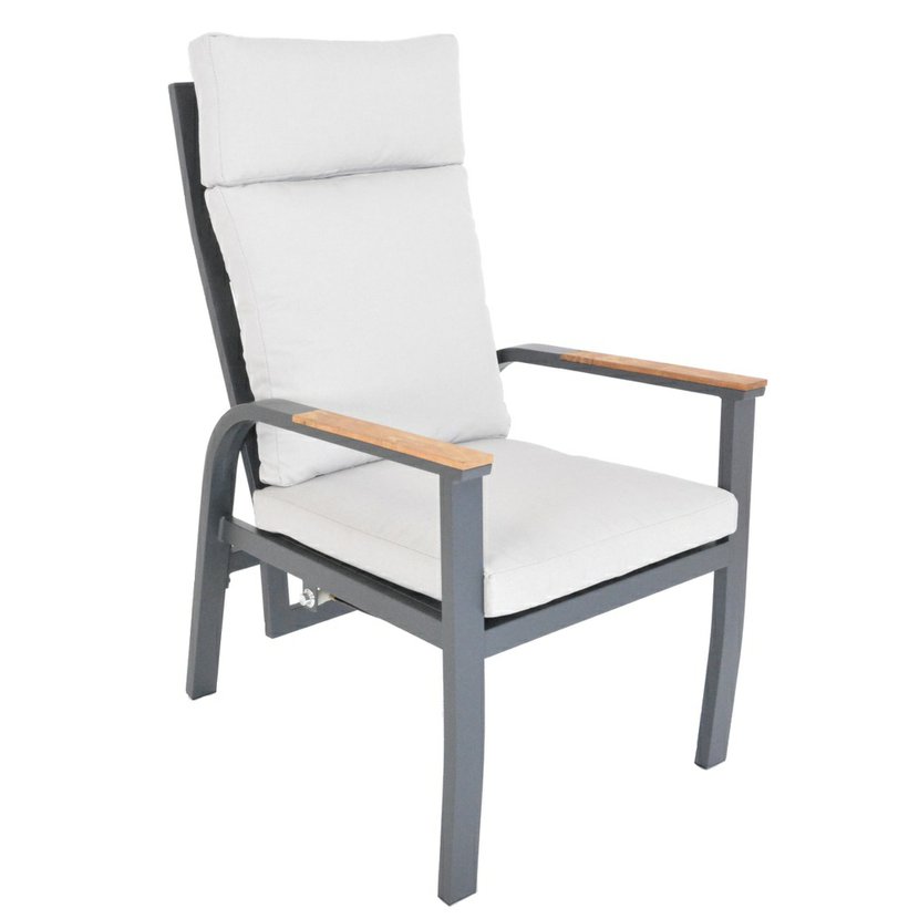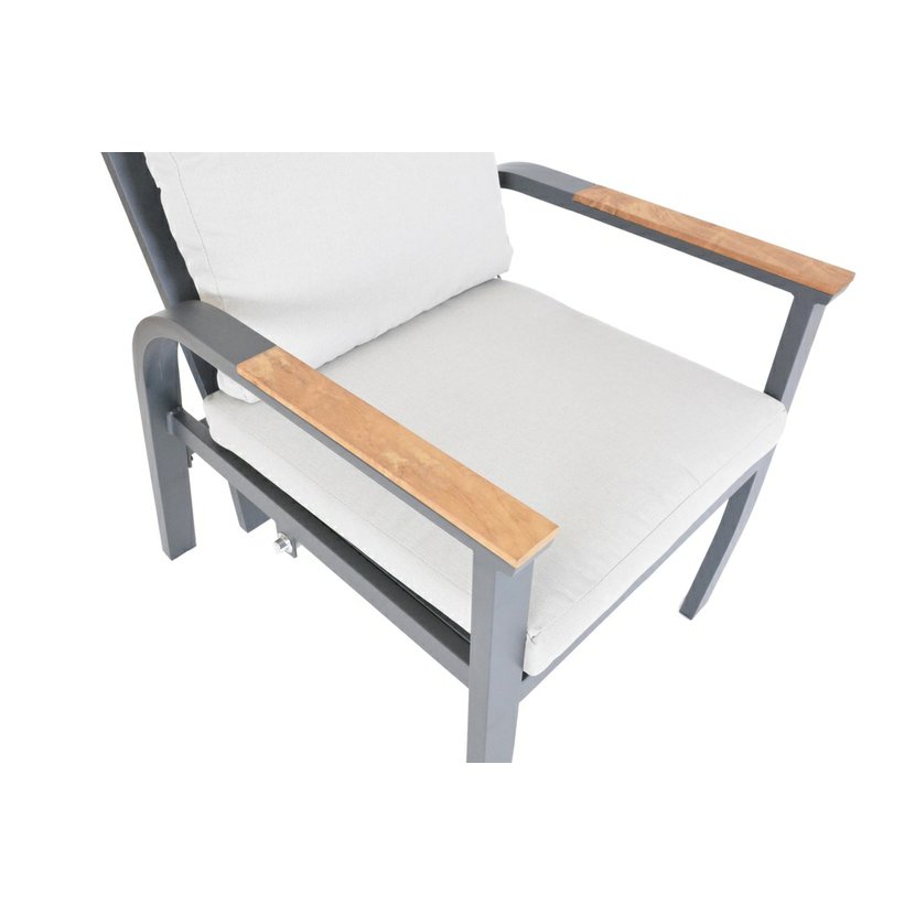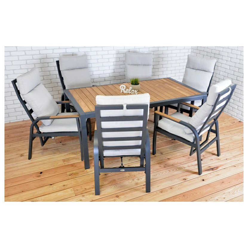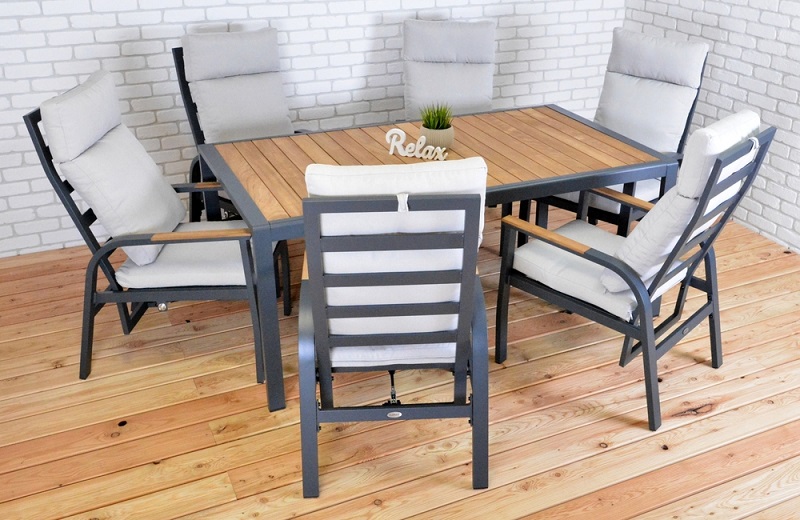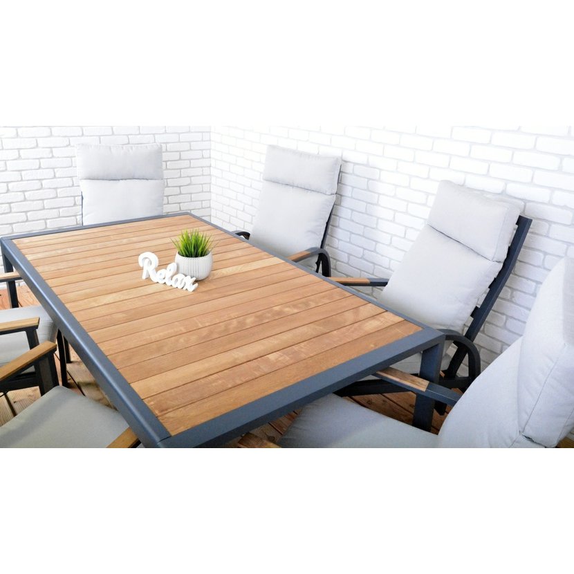 materiál: hliníková konštrukcia - teakové podrúčky a teaková doska stola