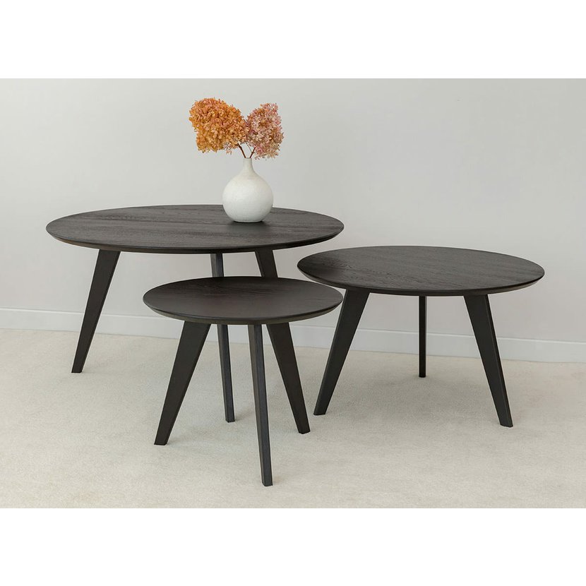 Okrúhly konferenčný stolík Orbetello vnesie do vášho domova útulnosť aj eleganciu. Vďaka jemnému tvaru bez ostrých hrán pôsobí vzdušne a opticky nezaťažuje priestor. Matná čierna farba mu dodáva moderný a nadčasový vzhľad, ktorý sa hodí takmer do každého interiéru.