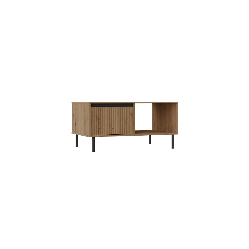 stolík má dve zásuvky a otvorenú policu v jednej časti