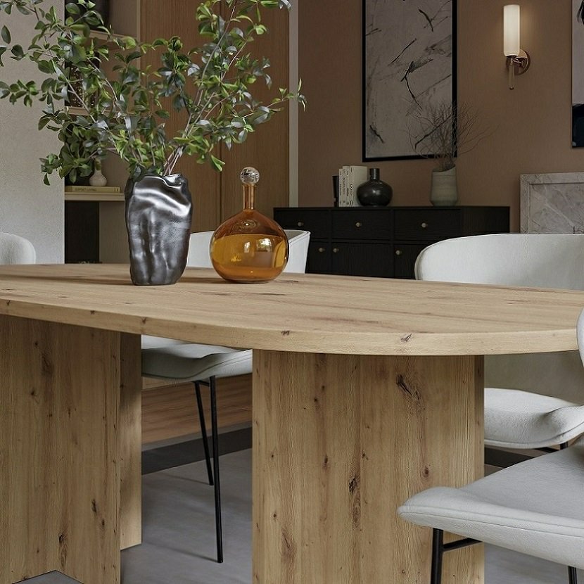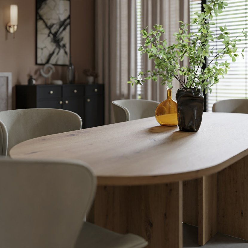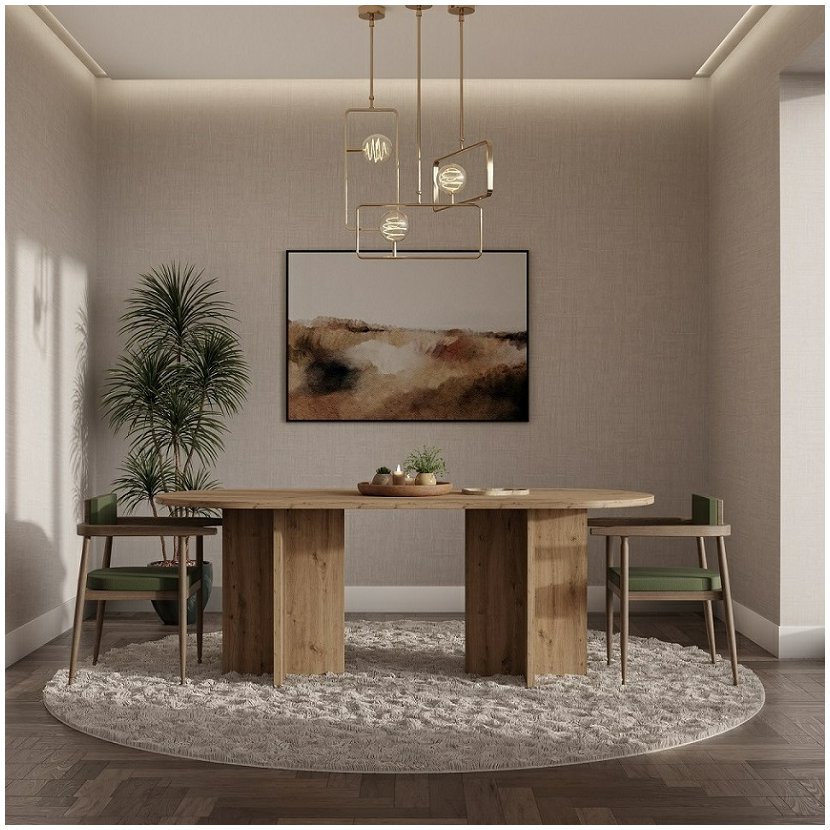 Jedálenský stôl LOEN v dubovom prevedení zaujme na prvý pohľad svojím moderným, ale nadčasovým dizajnom inšpirovaným prírodou. Pevné nohy dodávajú stolu stabilitu a výrazný charakter, zatiaľ čo jemná drevená kresba v teplom odtieni dubu artisan vytvára útulnú atmosféru v každej jedálni. Priestranná doska stola ponúka dostatok miesta na každodenné stolovanie a slávnostné posedenia s rodinou alebo priateľmi. Stôl LOEN je ideálnou voľbou pre tých, ktorí hľadajú kombináciu funkčnosti, pevnosti a elegantného vzhľadu, ktorý sa ľahko hodí do moderných aj tradičných interiérov.