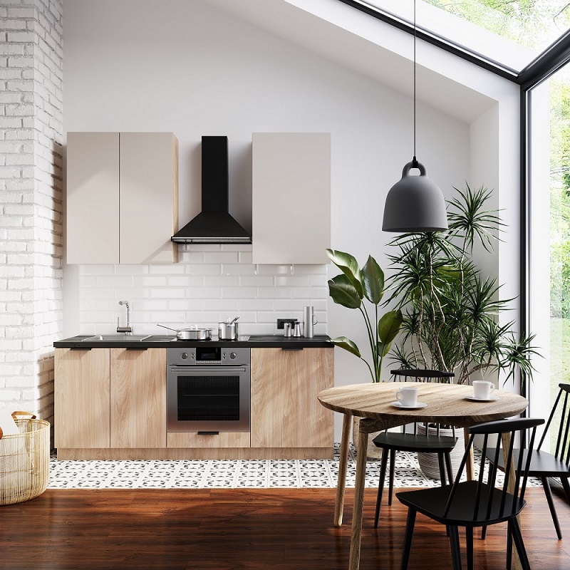 Súprava kuchynských skriniek Sorento v modernom dizajne. Veľmi vydarená kombinácia dreveného dekoru a tlmenej zelenej farby vytvára príjemne hrejivý a nadčasový vzhľad. Spodné skrinky sú vybavené…