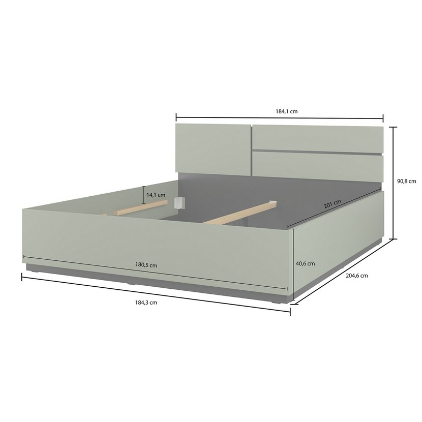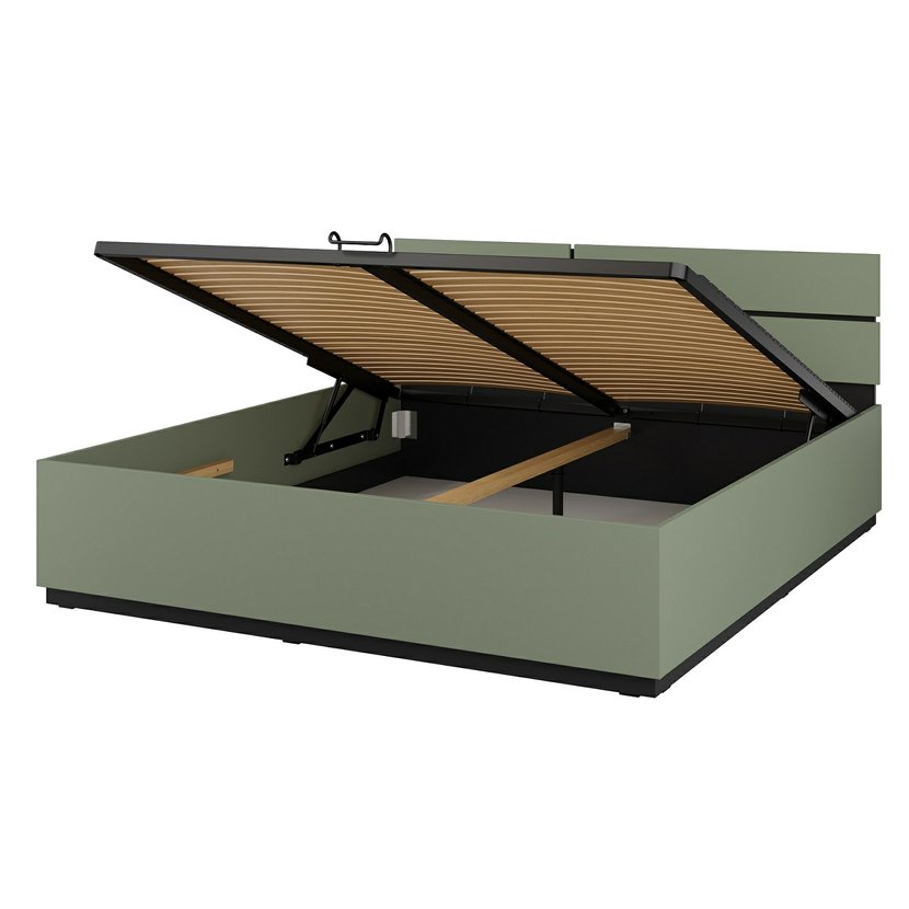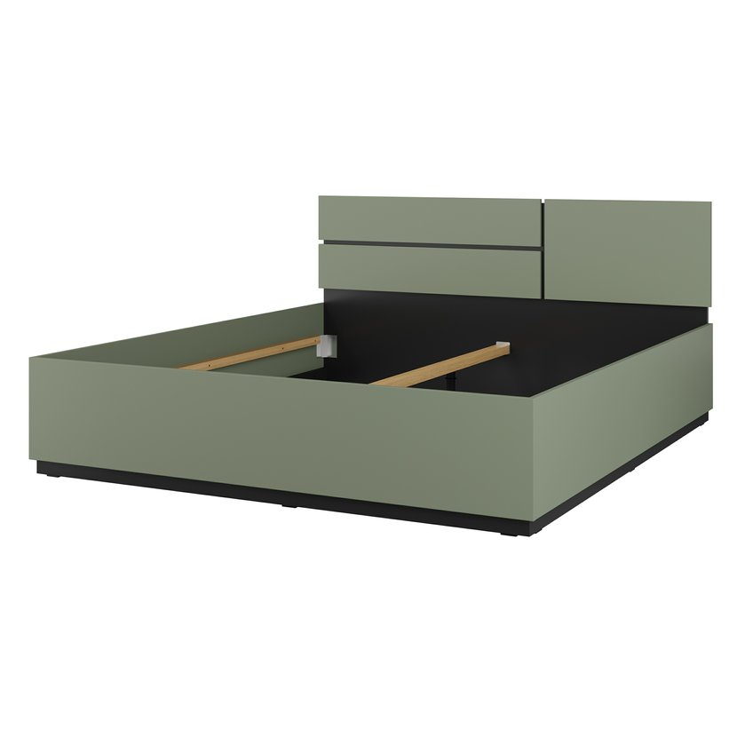 Manželská posteľ Cross 180 × 200 cm – pine green / čierna ponúka pohodlný priestor na spanie, ideálny pre dvoch ľudí, ktorí ocenia dostatok miesta na spanie a relax. Elegantný dizajn v modernom odtieni borovicovo zelenej farby doplnený čiernymi detailmi má čistý a nadčasový vzhľad, vďaka čomu sa hodí do každej spálne. Stabilná konštrukcia z vysoko kvalitného lamina a MDF je doplnená výklopným roštom s kovovým rámom, vďaka čomu posteľ poskytuje nielen vysoký komfort, ale aj praktický úložný priestor pod posteľou.