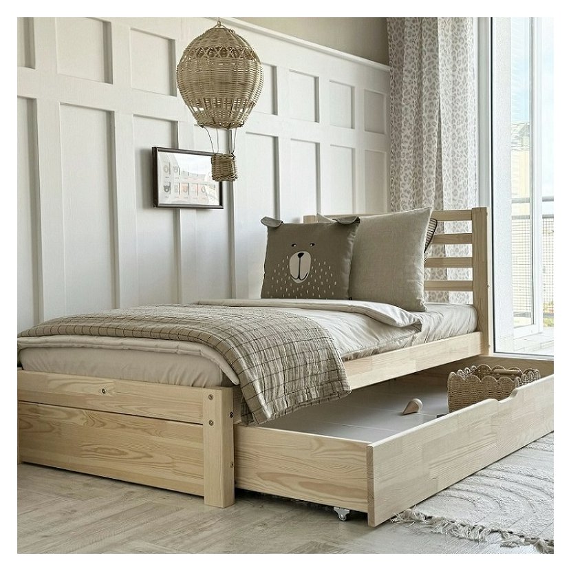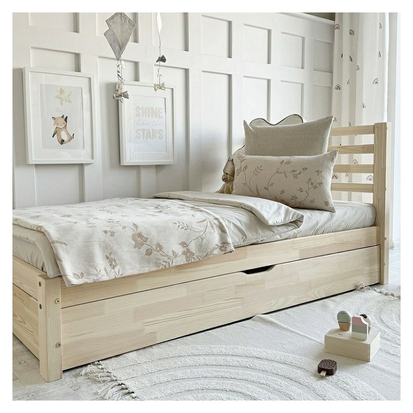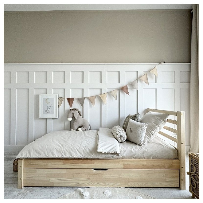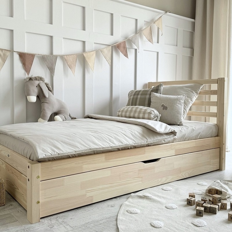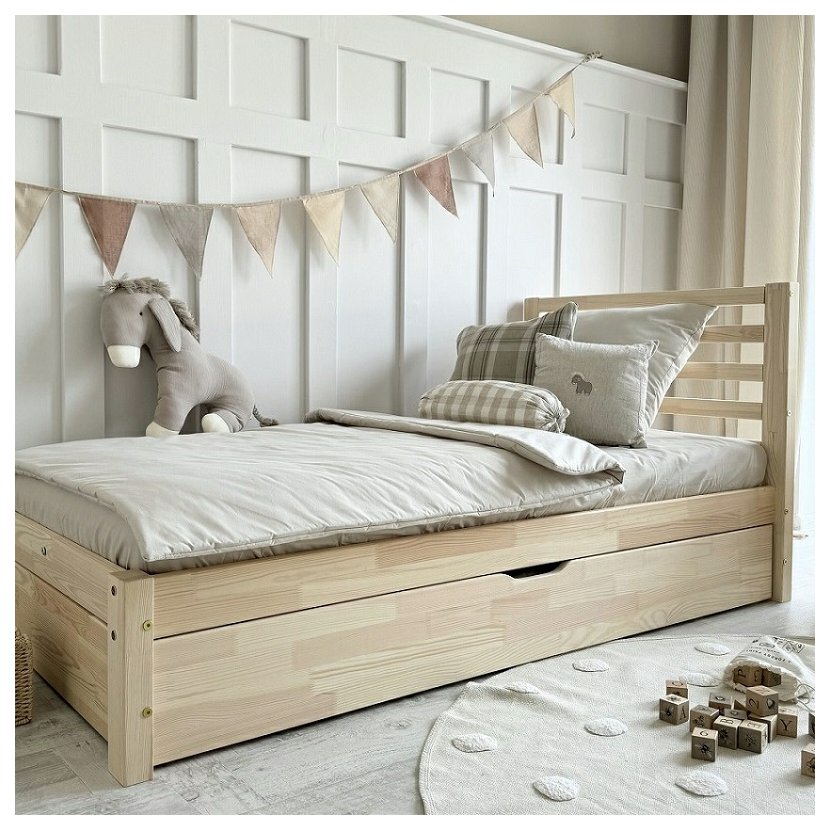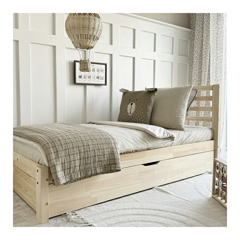 Pevná a stabilná jednolôžková posteľ do detskej izby je vyrobená z masívneho borovicového dreva z ekologickej farmy. Jednotlivé hrany sú brúsené do hladka bez nerovností. Zaoblené hrany minimalizujú…