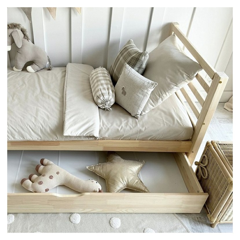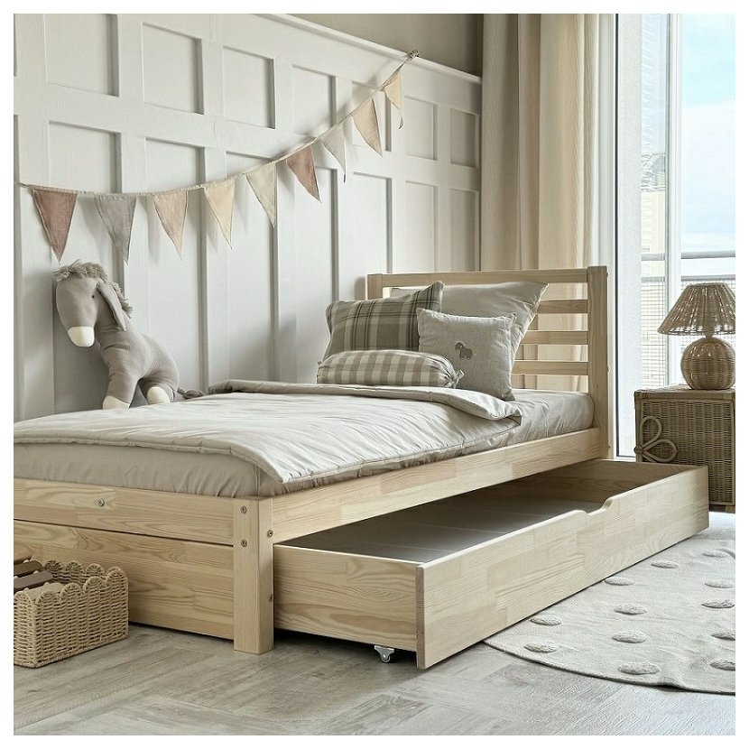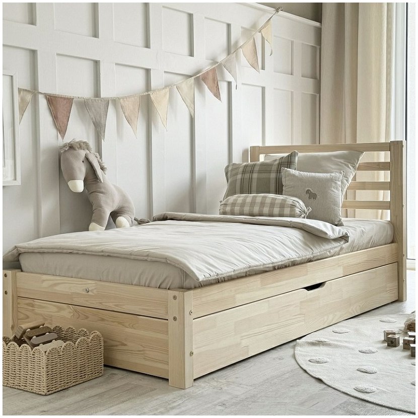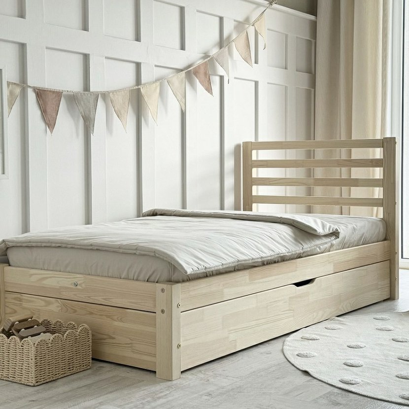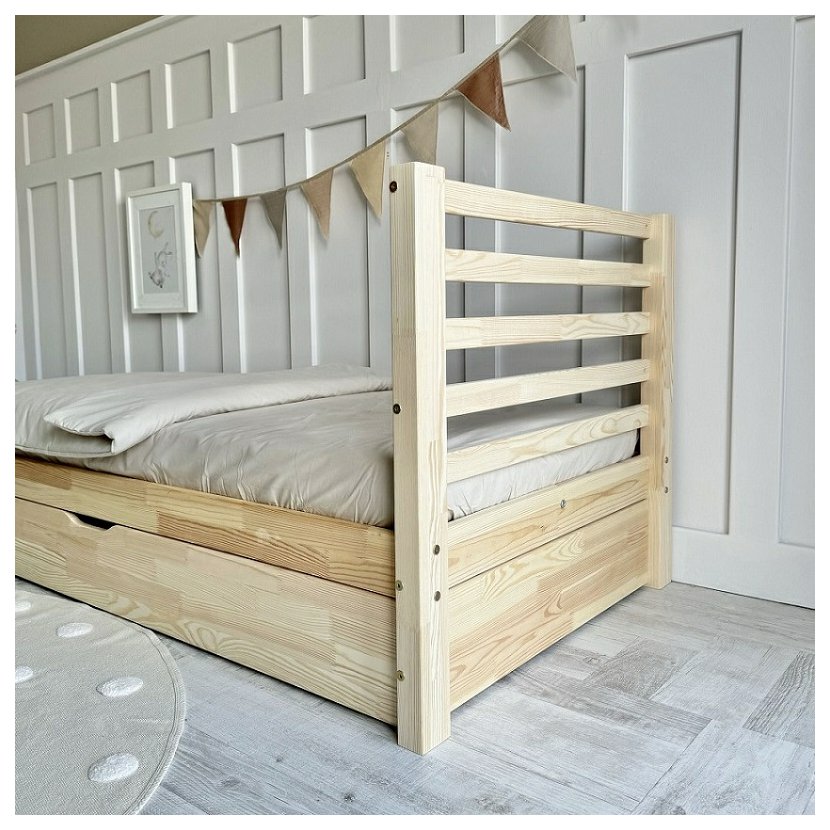 Pevná a stabilná jednolôžková posteľ do detskej izby je vyrobená z masívneho borovicového dreva z ekologickej farmy. Jednotlivé hrany sú brúsené do hladka bez nerovností. Zaoblené hrany minimalizujú…