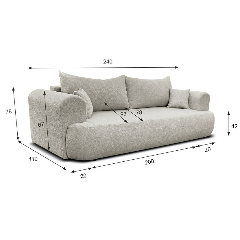 Pohovka Baron je ideálnou voľbou pre moderné interiéry, kombinujúc čistý dizajn, pohodlie a praktickosť. Jej jemne zaoblené línie, ktoré dodávajú pohovke nadčasovú eleganciu a útulný vzhľad. Vďaka svojej rozkladacej funkcii sa Baron môže v okamihu premeniť na pohodlnú posteľ pre príležitostných hostí. Sofa má tiež priestranný úložný priestor, ideálny na uloženie posteľnej bielizne, prikrývok alebo sezónneho textilu.