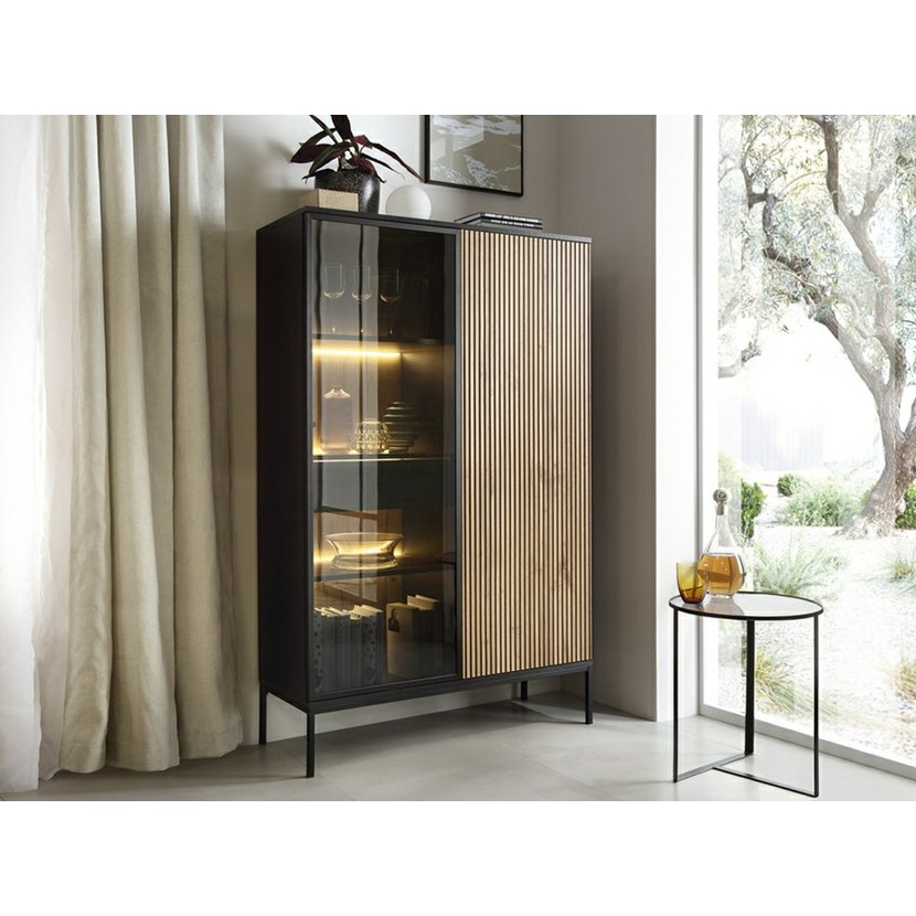 Moderná kolekcia nábytku Willow zaujme predovšetkým svojim dizajnom a spracovaním. Čierna v kombinácii s prírodným dubom sa bude vynímať v každom priestore. Na originalite dodajú dvierka s frézovaním.