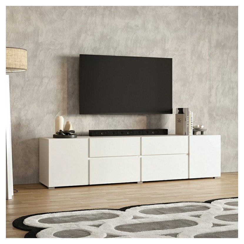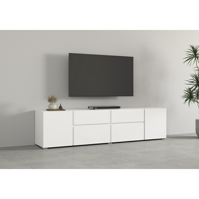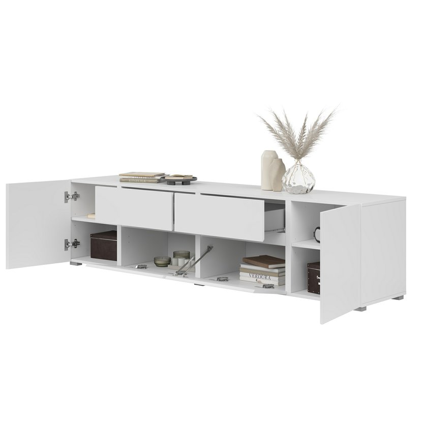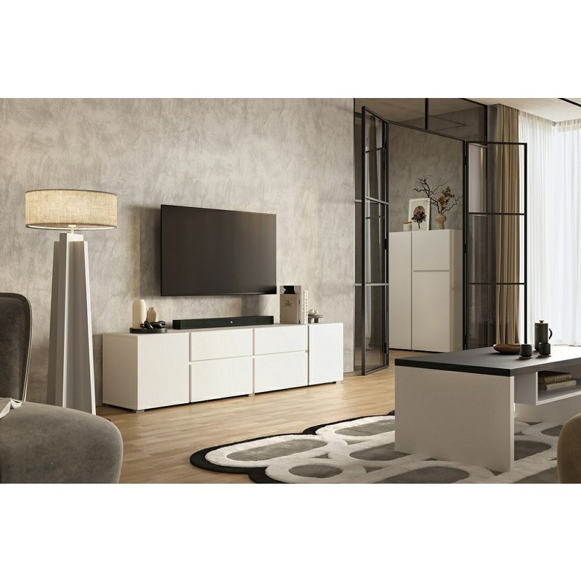 Štýlový TV stolík Asymetric v matnej čiernej farbe dodá vašej obývačke čistý a moderný vzhľad. Vďaka systému otvárania bez úchytiek s elegantne frézovanými hranami pôsobí nábytok minimalisticky a…