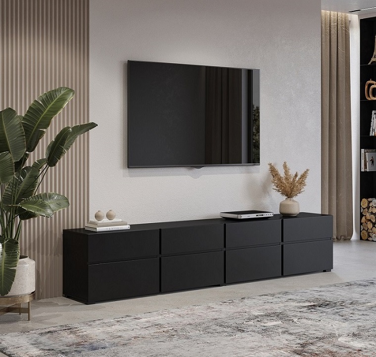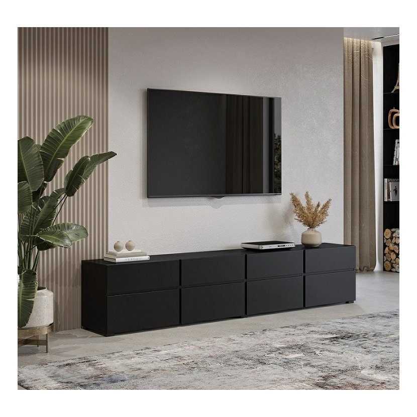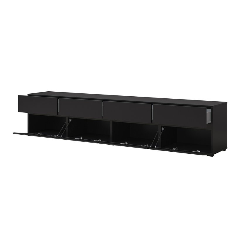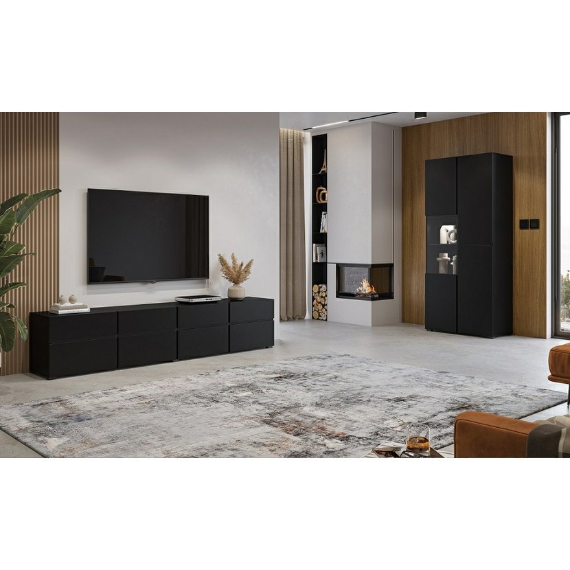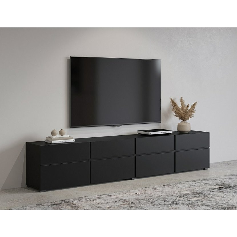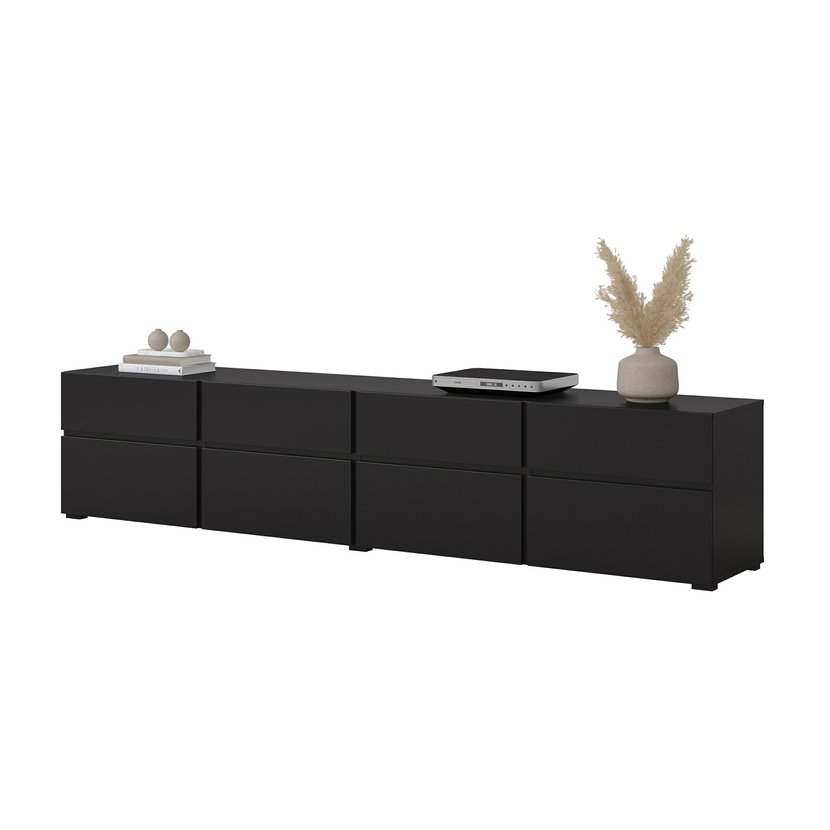 Štýlový TV stolík Asymetric v matnej čiernej farbe dodá vašej obývačke čistý a moderný vzhľad. Vďaka systému otvárania bez úchytiek s elegantne frézovanými hranami pôsobí nábytok minimalisticky a…