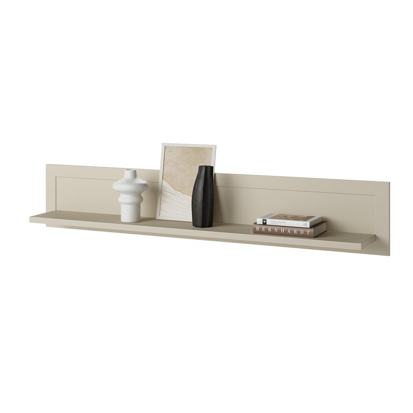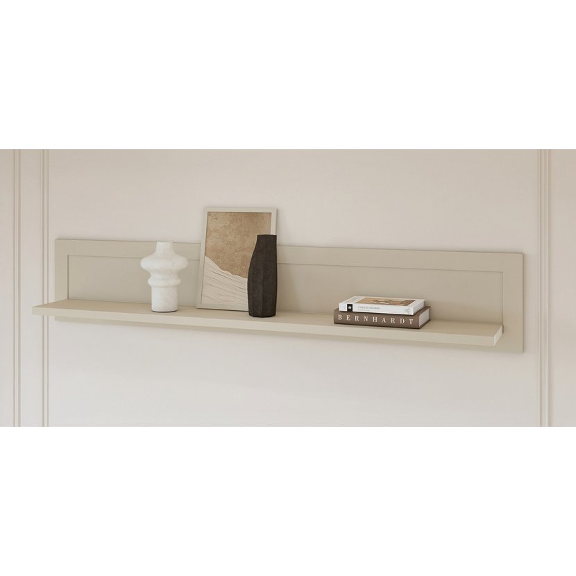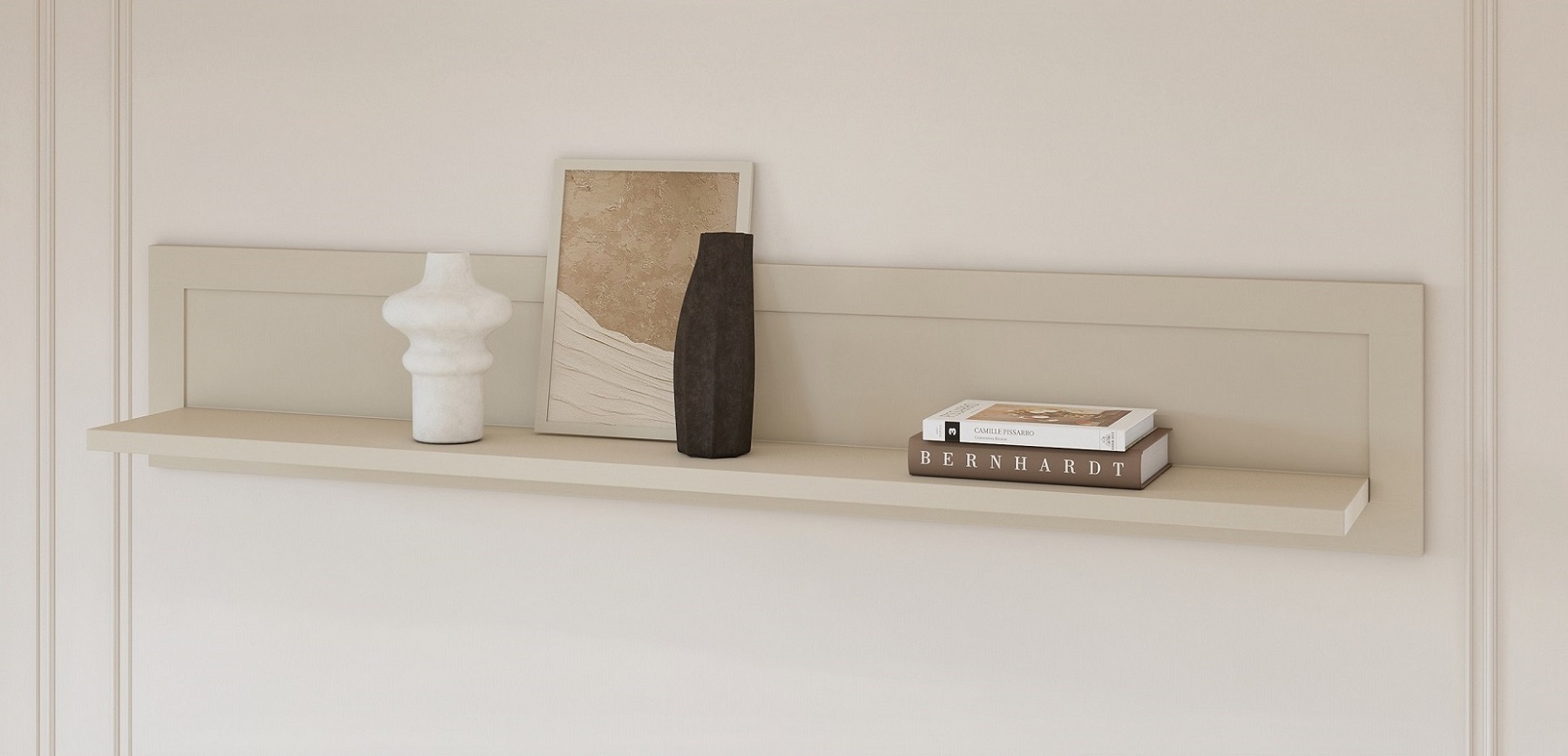 Prinášame vám klasickú nástennú policu Evora, teraz v jemnom a nadčasovom svetlo béžovom prevedení. Polica Evora spája tradičný štýl s moderným vkusom, vďaka čomu je vhodná do obývacej izby, spálne alebo predsiene. Dizajn sa vyznačuje matným povrchom, ktorý je jemný, ale upúta pozornosť svojím delikátnym odtieňom. Táto verzia sa perfektne hodí do svetlých interiérov – dopĺňa jemné tóny drevených dekorov a zdôrazňuje vzdušnosť miestnosti.