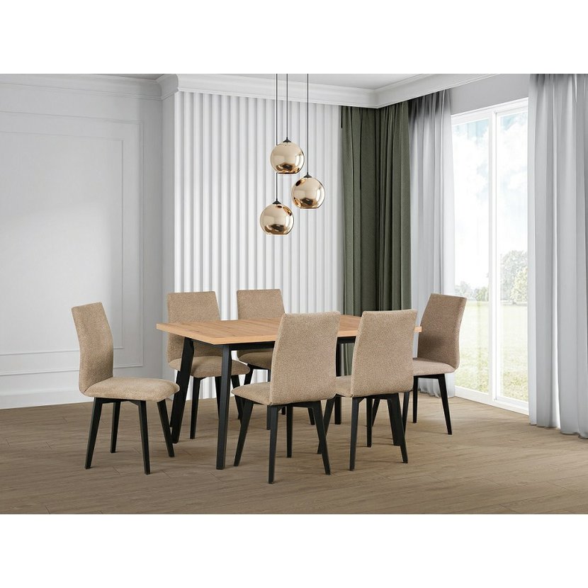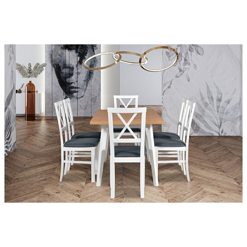 Objavte ideálnu kombináciu prírodnej elegancie a praktickej funkčnosti s jedálenským stolom Wenus 5. Masívne bukové nohy zaisťujú pevnosť a stabilitu, zatiaľ čo doska z dubovej dyhy vyžaruje jemnú,…