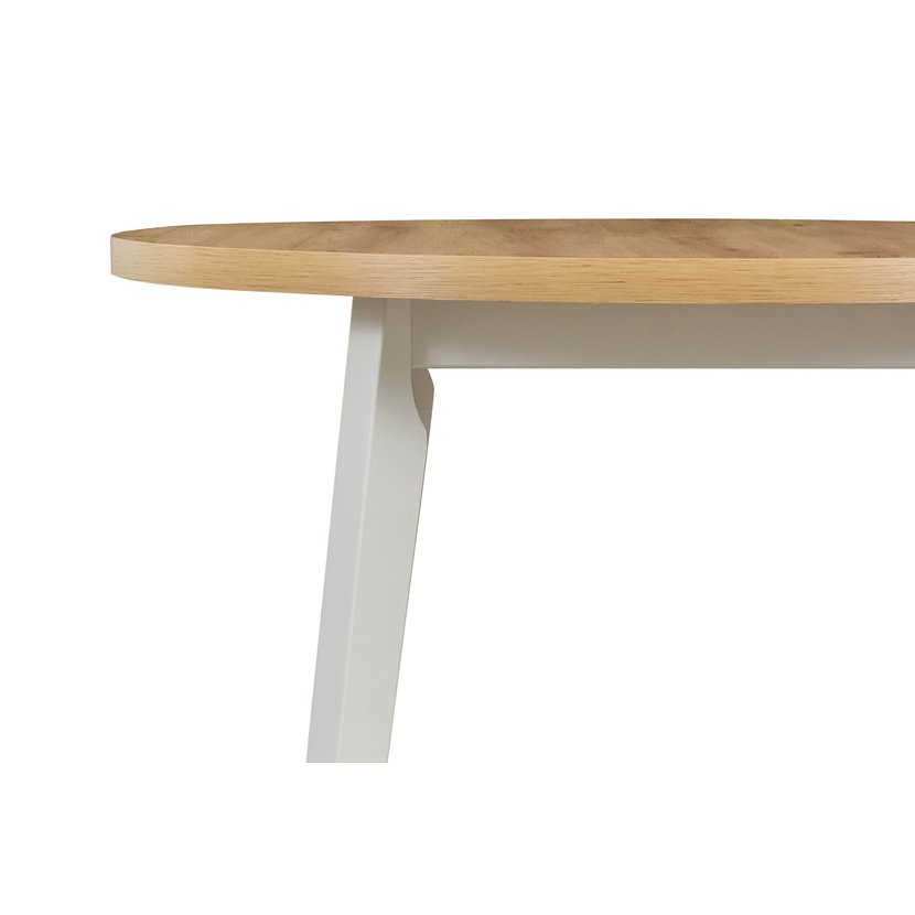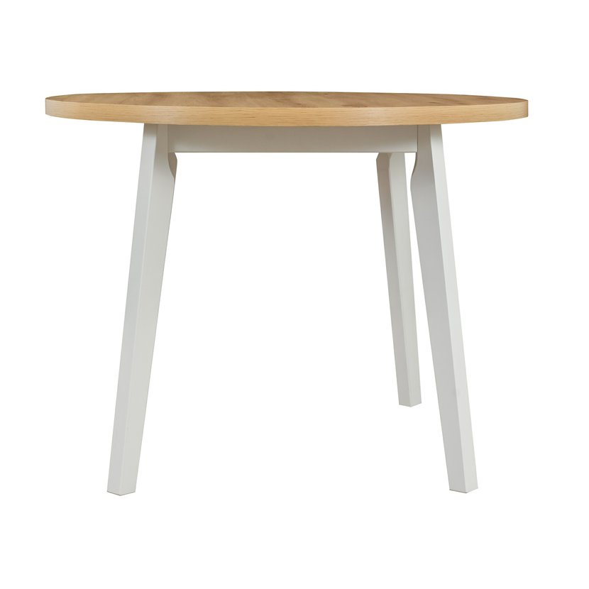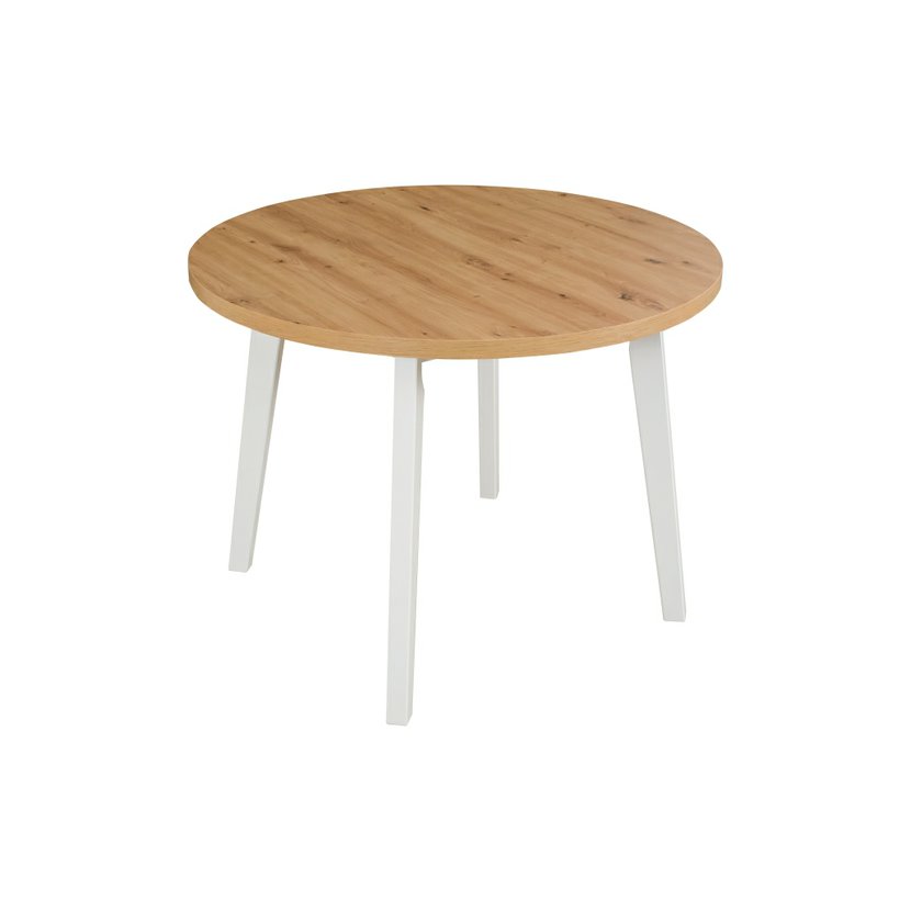 Tento minimalistický okrúhly stôl Oslo 3 spája škandinávsku eleganciu s praktickou funkčnosťou. Robustné nohy z masívneho buku poskytujú stabilnú oporu pre odolnú laminovanú dosku s hrúbkou 32 mm – odolný a ľahko udržiavateľný materiál. S kompaktným priemerom 100 cm a výškou 75 cm je ideálnou voľbou pre menšie kuchyne alebo jedálne, pričom okrúhly tvar opticky zväčšuje priestor a uľahčuje komunikáciu pri stole.