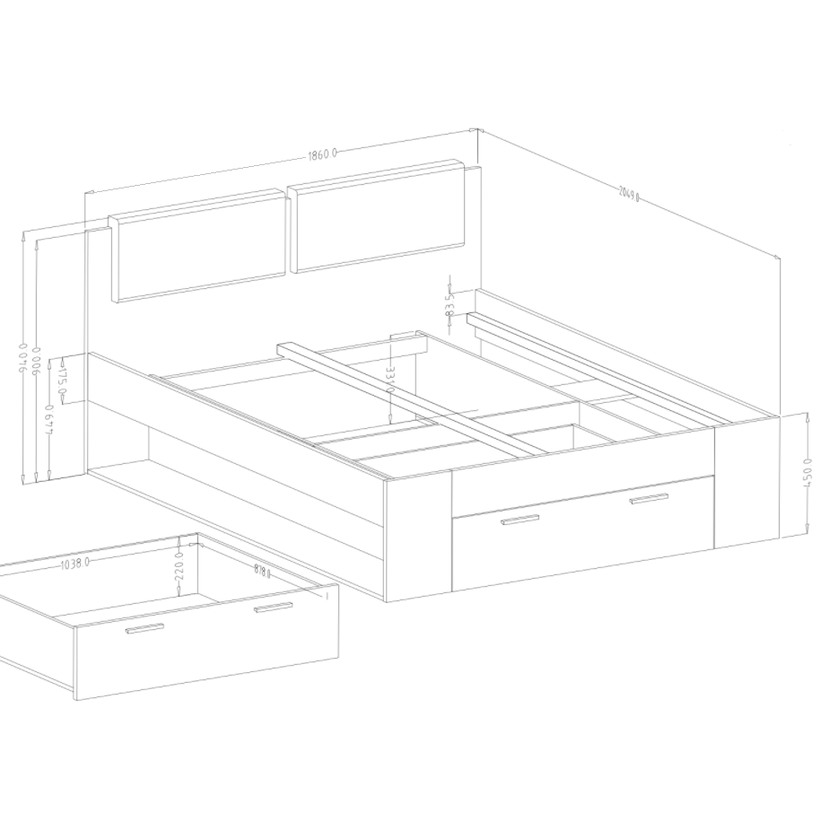 Parametre produktu Posteľ Galaxy 3 s úložným priestorom - 180 x 200 cm - dub monastery / čierny lesk