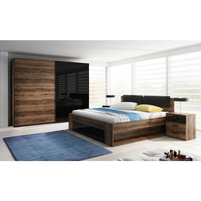 Posteľ Galaxy 3 s úložným priestorom - 180 x 200 cm - dub monastery / čierny lesk