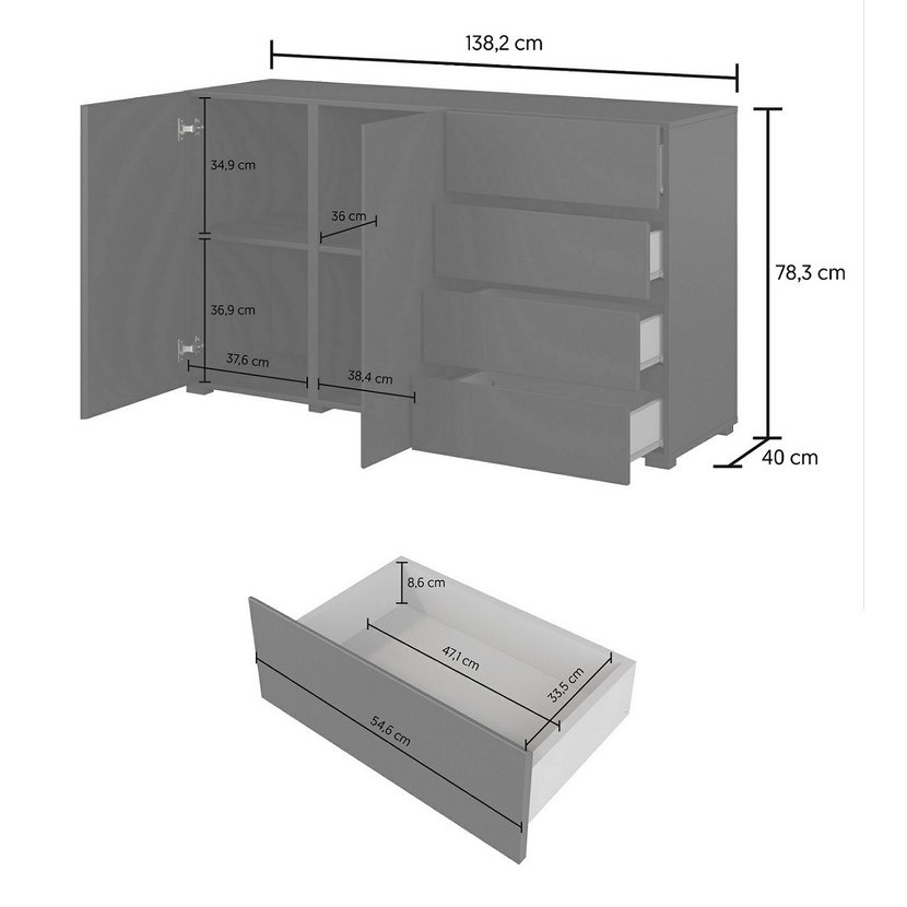 Elegantná komoda Asymetric v matnej bielej farbe sa stane praktickým a štýlovým prvkom vášho interiéru. Vďaka systému otvárania bez úchytiek s frézovanými hranami má moderný a čistý vzhľad bez…