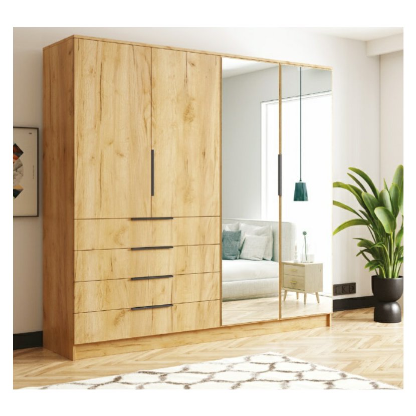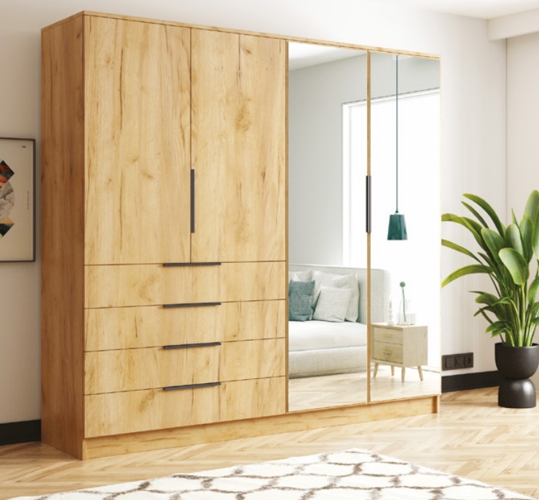 Šatníková skriňa Rocco v modernom dizajne je vyrobená z kvalitného lamina hrúbky 16 mm. Jedinečnou súčasťou tejto skrine je dokonale zvolené farebné prevedenie a štruktúra vo forme ozdobných lamiel.