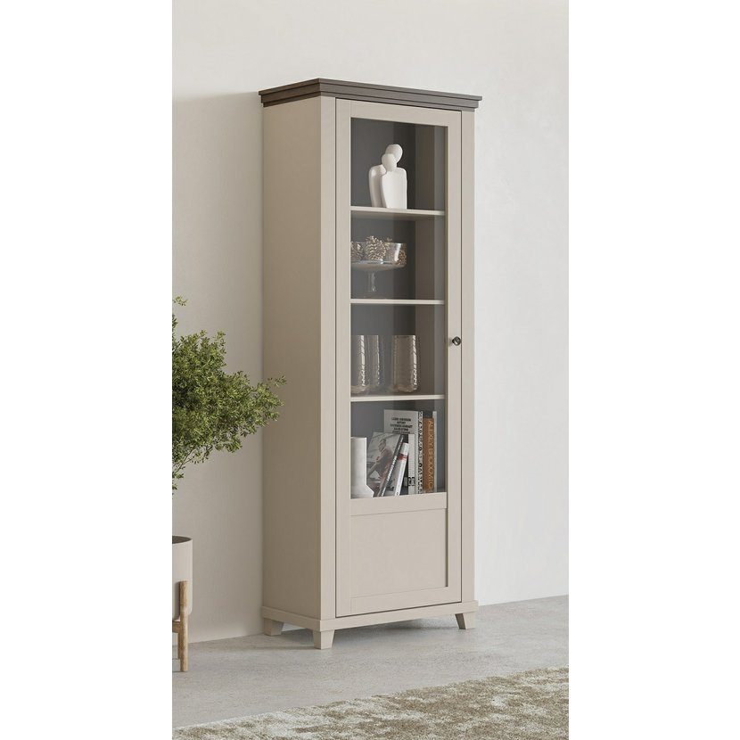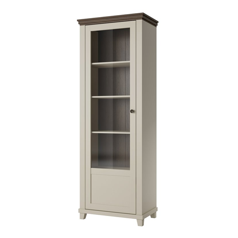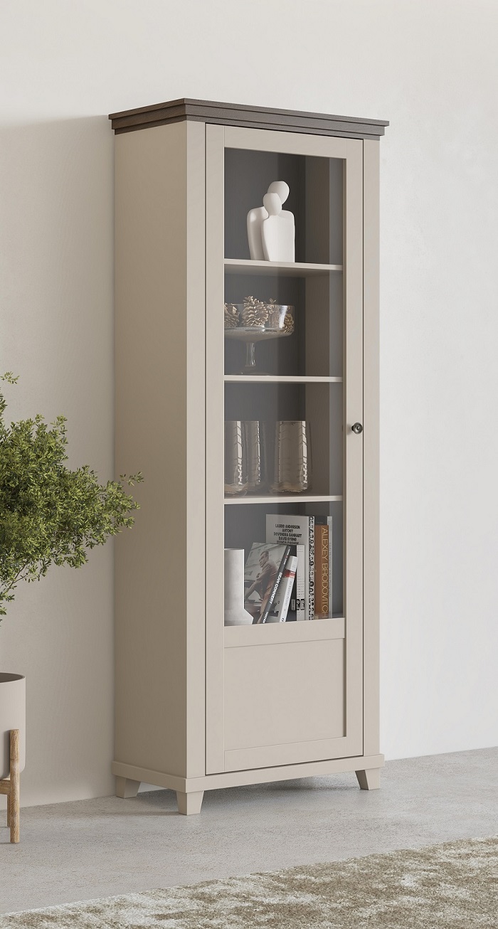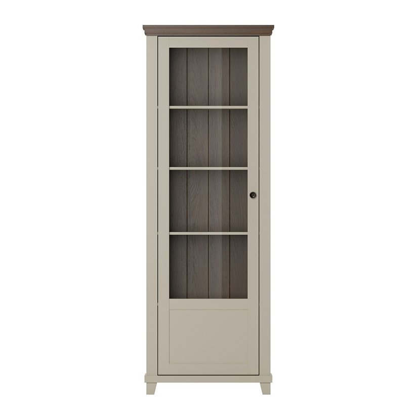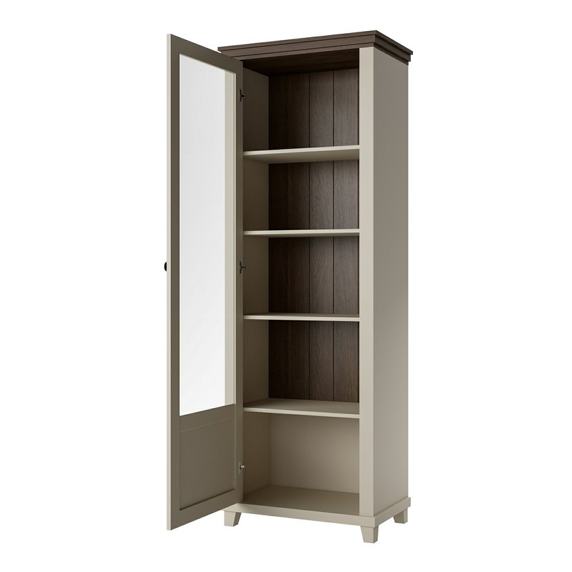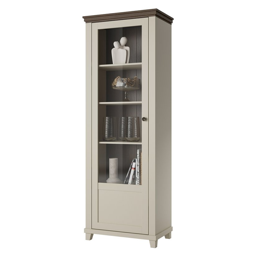 Predstavujeme úzku vitrínu Evora 1 v jemnom béžovom odtieni, ktorý efektívne kombinuje dekor dubu dunin. Táto varianta ponúka vyvážený kontrast medzi svetlými tónmi a teplým dreveným dekorom, ideálny pre moderné aj klasické interiéry. Vitrína má praktické usporiadanie – sklenené dvierka umožňujú elegantne vystaviť dekorácie alebo zberateľské predmety, zatiaľ čo pevné časti slúžia na uloženie menej dekoratívnych predmetov. Vysoká kvalita spracovania s starostlivo zladenými hranami a presnými detailmi podčiarkuje celkovú hodnotu produktu.