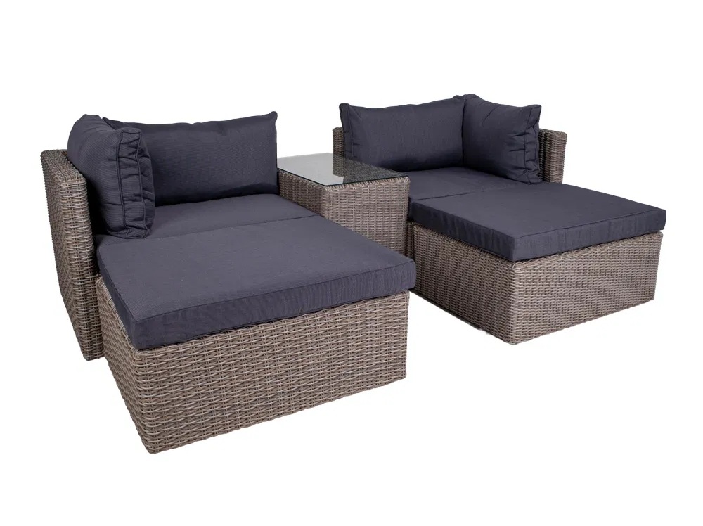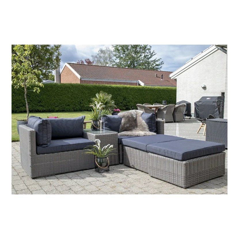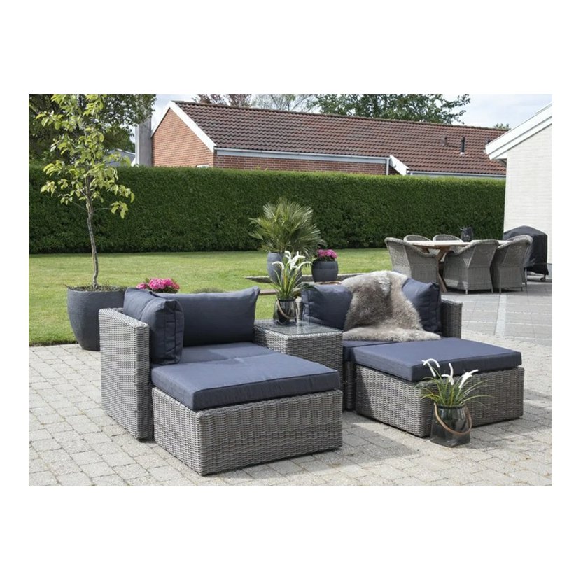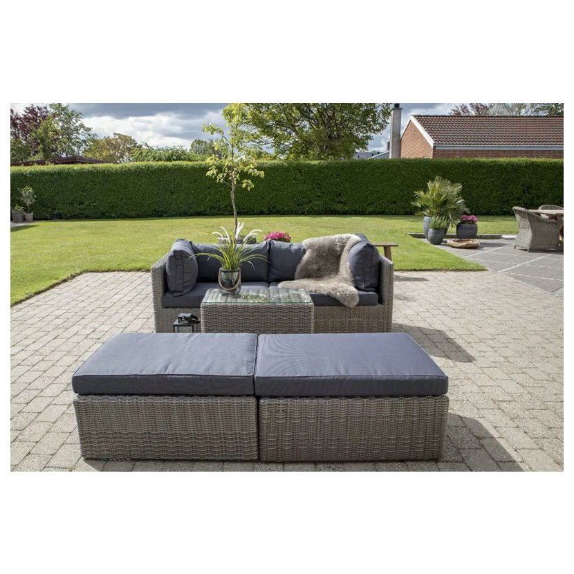 Súprava je vhodná na vonkajšie použitie, je odolná voči poveternostným vplyvom a ľahko sa udržiava - vankúše možno čistiť vlhkou handričkou a rám podľa potreby ošetriť.