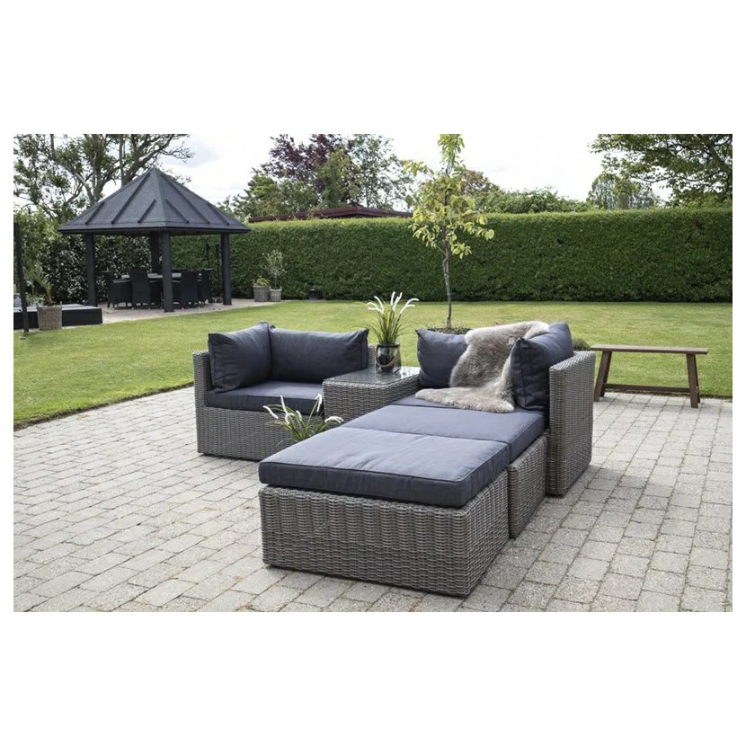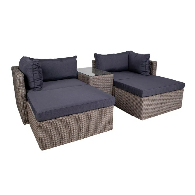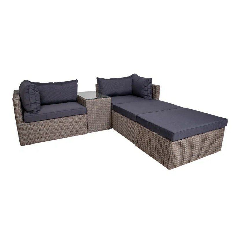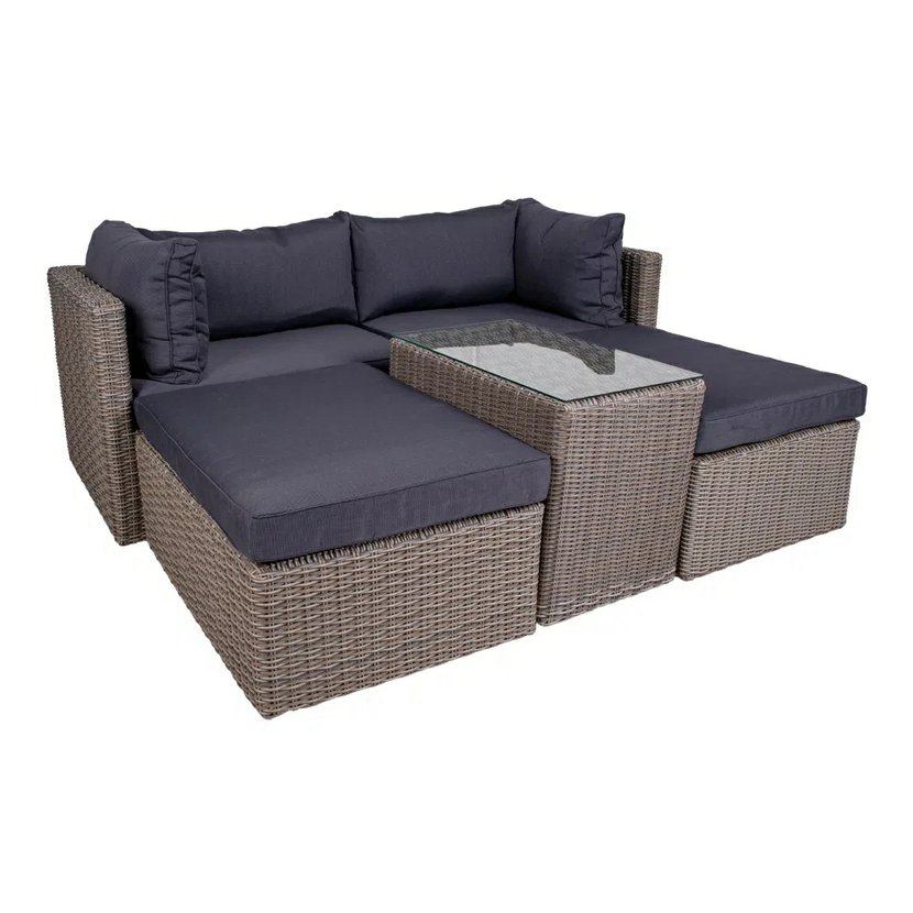 Premeňte svoju terasu, balkón alebo dvorček súpravou Claire, ktorá je vyrobená z lisovaného plastu v imitácii prírodného ratanu. Súprava sa skladá z rohového 5-miestneho sofa a stolíka. Podušky, ktoré…