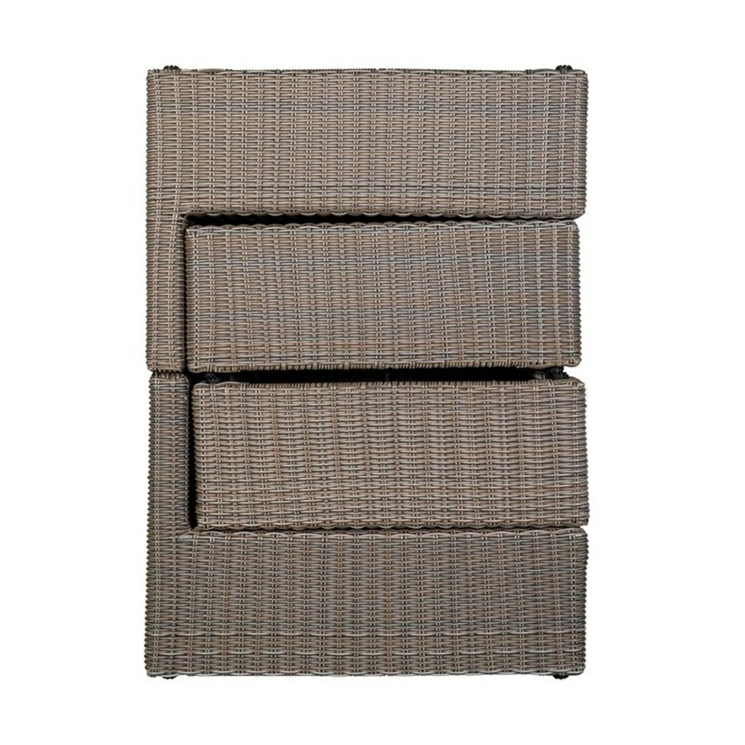 Elegantný set v imitácii ratanu, skladajúci sa z dvoch kresiel, dvojitého gauča a stola, ktorý navyše slúži ako úložný box. Produkt je dodávaný s pohodlnými poduškami v štýlových farbách. Ľahká a…