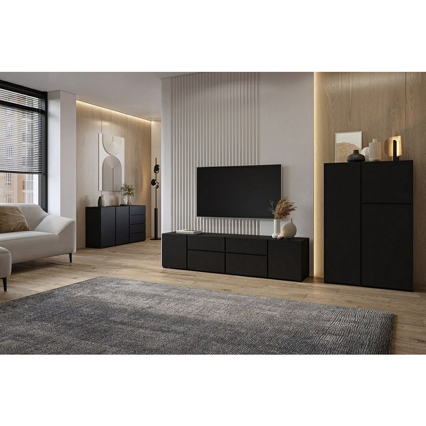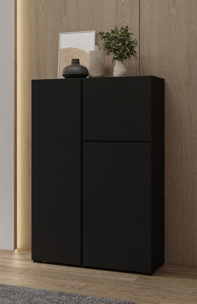 Moderná vysoká komoda Asymetric v matnej bielej farbe je elegantným riešením úložného priestoru pre vašu obývačku, spálňu alebo predsieň. Vďaka systému otvárania bez úchytiek s frézovanými hranami má…