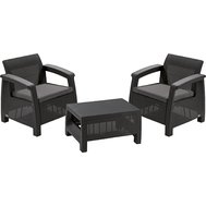 Set obsahuje dve pohodlné kreslá a stôl, čo je ideálne pre romantické večery vo dvojici alebo pre pohodlné posedenie s priateľmi. Užite si spoločnosť svojich blízkych v pohodlnom a štýlovom prostredí. Vďaka špeciálnemu materiálu je tento záhradný set odolný proti UV žiareniu, čo zaručuje, že si užijete jeho krásu až do ďalšieho leta. Súčasťou setu sú aj šedé podušky so snímateľným a prateľným poťahom, ktoré zvyšujú pohodlie počas Vašich vonkajších odpočinkových okamihov.